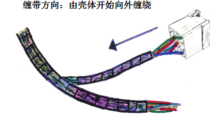 膠帶花纏指使用膠帶連續(xù)對線束進行裹纏,每圈的裹纏間隙一般在 10-25mm 范圍內,中間不重疊覆蓋。
